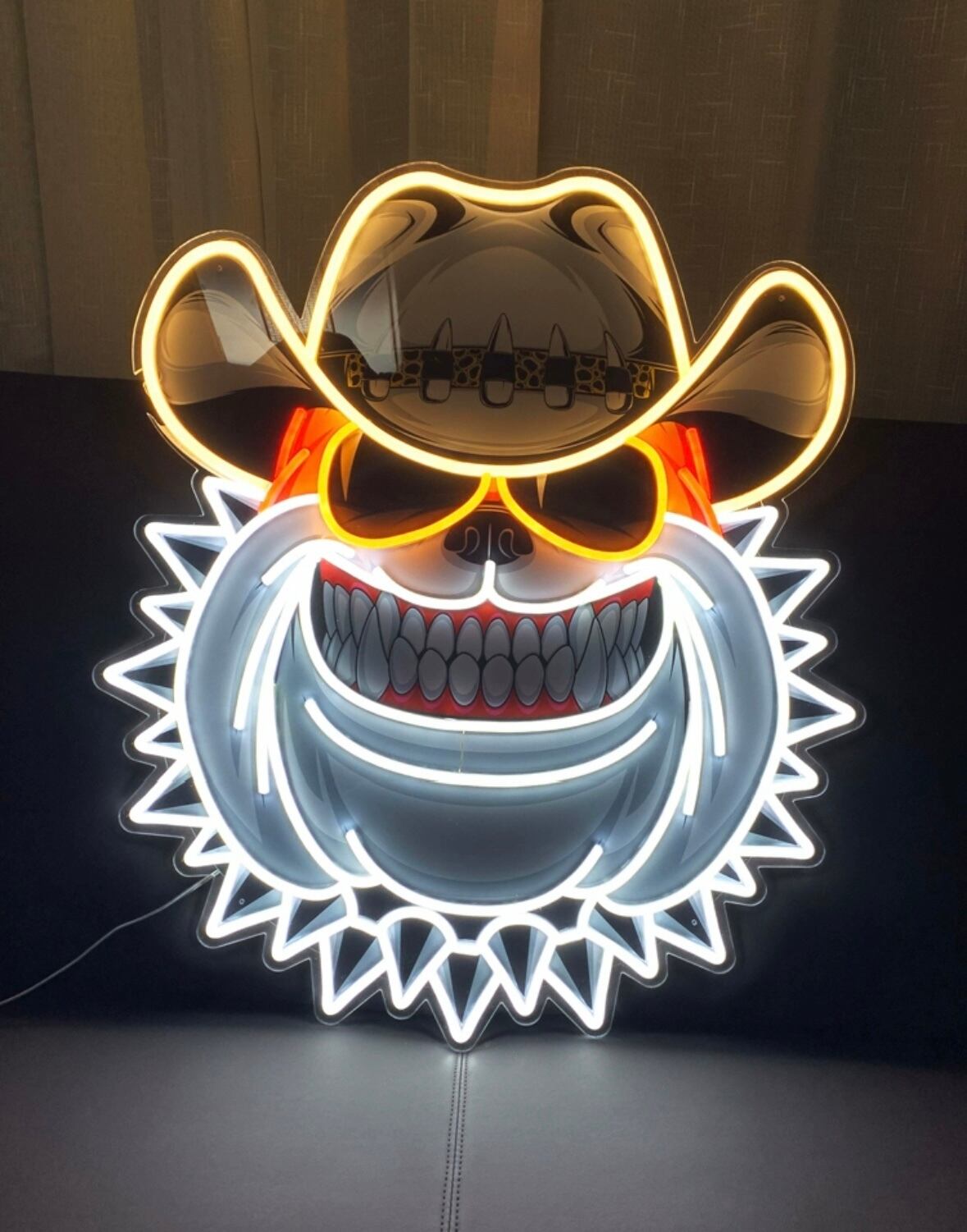 通常は透明アクリル板で制作するところを、いただいたデザインを背面アクリル板へUV加工することで、より自由度の高い表現が可能になりました。